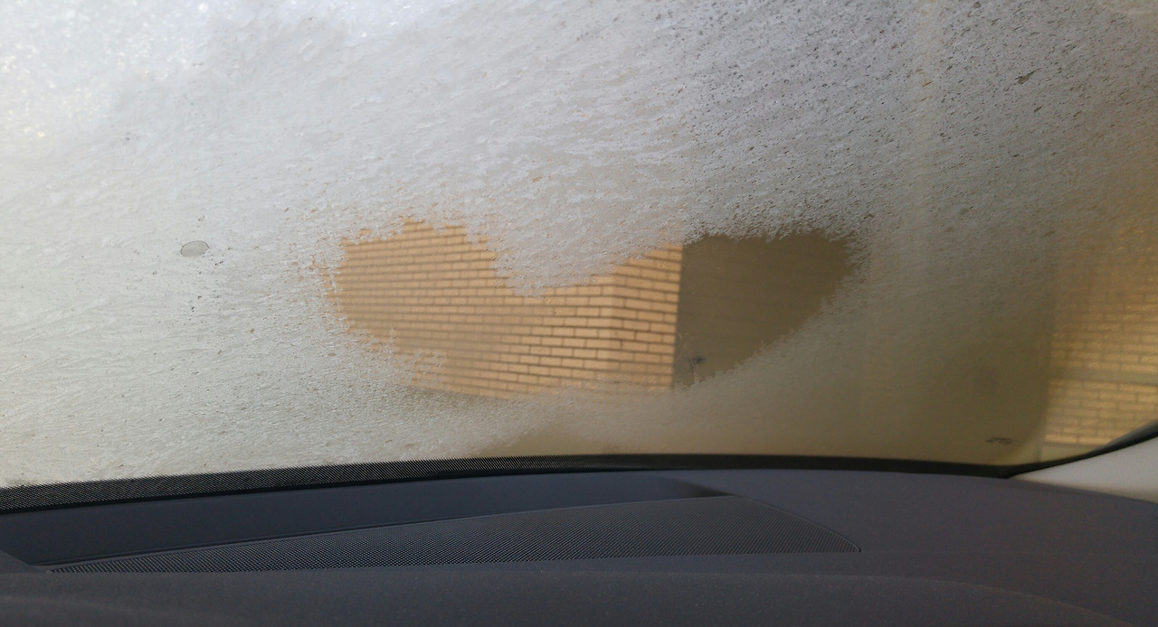 오늘은 출근길 차에 올라 시동을 걸다 성애가 낀 앞 유리에서 하트 모양을 발견했다.