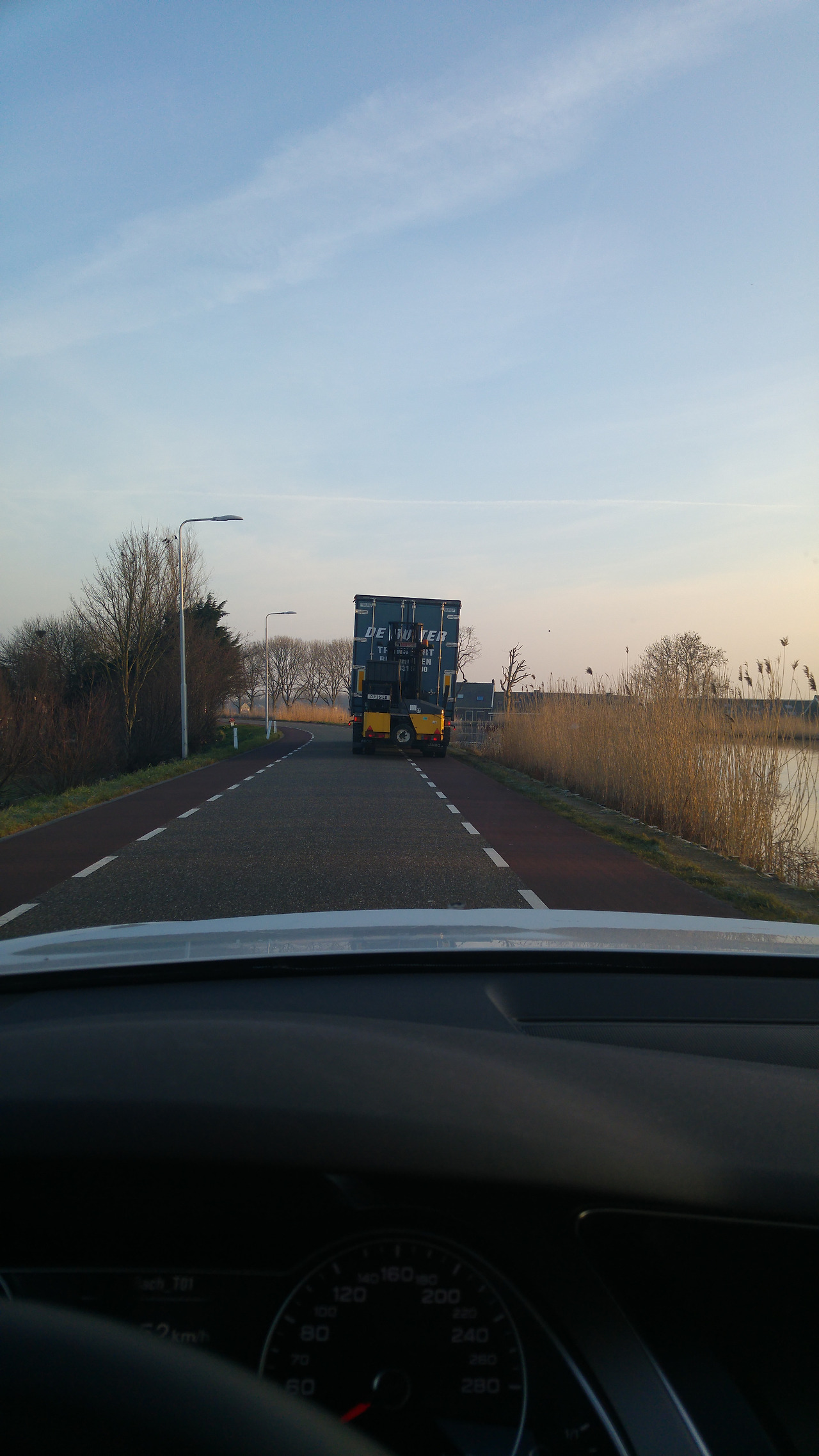 출근길, 그 좁은 도로를 가다 앞서 서행하는 컨테이너 화물차를 맞이했다.
