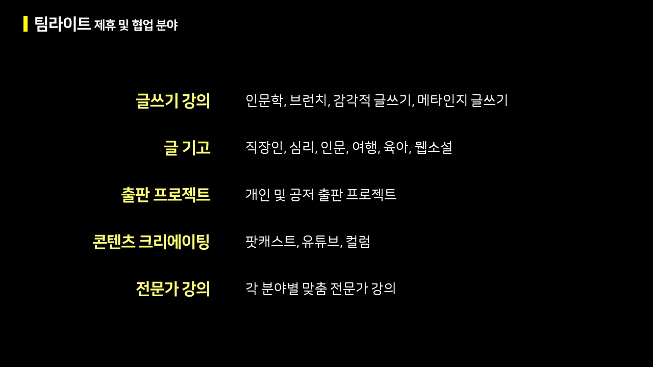 긴 설명보다, 팀라이트의 슬로건을 말씀드리면 더 이해가 잘 되실 겁니다.