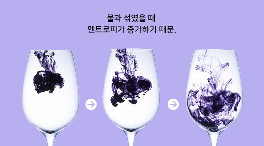 예를 들어 보겠다. 유리잔에 물이 차 있다. 여기에 잉크 한 방울을 넣으면 어떻게 될까? 그것은 서서히 퍼져나갈 것이다. 이를 두고 우리는 '엔트로피가 증가한다.'라고 말할 수 있다. 그리고 어떤 조치나 힘을 가하지 않는 한, 그러니까 자연상태 그대로 두었을 경우 이 흩어진 잉크가 처음 떨어지던 그 한 방울로 돌아갈 일은 거의 없다는 것이다.
