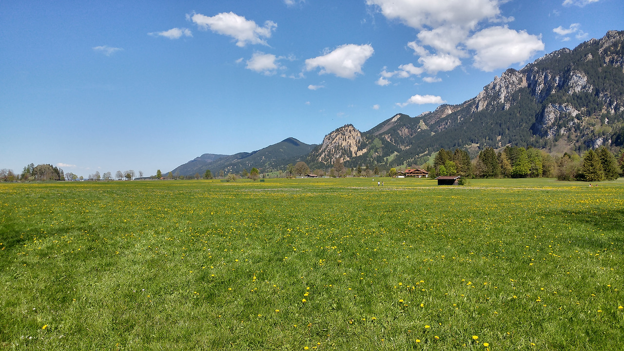 하이델베르크에서 퓌센까지는 332km, 3시간이 조금 넘는 거리다. 물론, 실제 도착한 시간은 예상보다 조금 빨랐다. 아우토반 덕분이다. 덕분에 온 몸에 긴장을 간직하고 달리긴 했지만. 퓌센에 가까워질수록 스위스 융프라우 아래 인터라켄이 생각났다. 넓은 초원, 사방의 눈 덮인 산. 그도 그럴 것이 퓌센은 스위스와 가깝고 오스트리아 국경에 인접해있다. 무엇보다 알프스 자락에 위치해있기에 더욱 그렇다.
