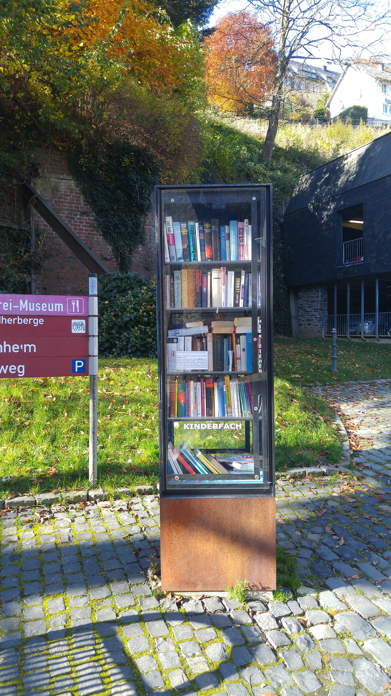 네덜란드에서 264km를 달려 도착한 몬샤우의 초입에서 아이들은 한껏 들떠 있었다. 맛있는 것도 먹고 잠도 자고, 창밖을 바라보던 아이들은 '도착'이라는 말과 함께 눈에 총기가 돈다. 녀석들도 차에서 내려 새로운 곳에 발을 내딛는 것이 마냥 좋은 모양이다. 초입에서 골목을 운전해 올라올라 마을의 윗 끝자락 주차장에 차를 댔다. 마을이 그리 크지 않음을 몸소 느낄 수 있었다. 마을에 도착한 사람들의 동선을 읽은 듯이 지도와 낯설게 서있는 책장이 우릴 맞이했다. "1198년으로 온 것을 환영해. 어디 한 번 이곳에서 시간을 잃어봐"라고 속삭이면서.