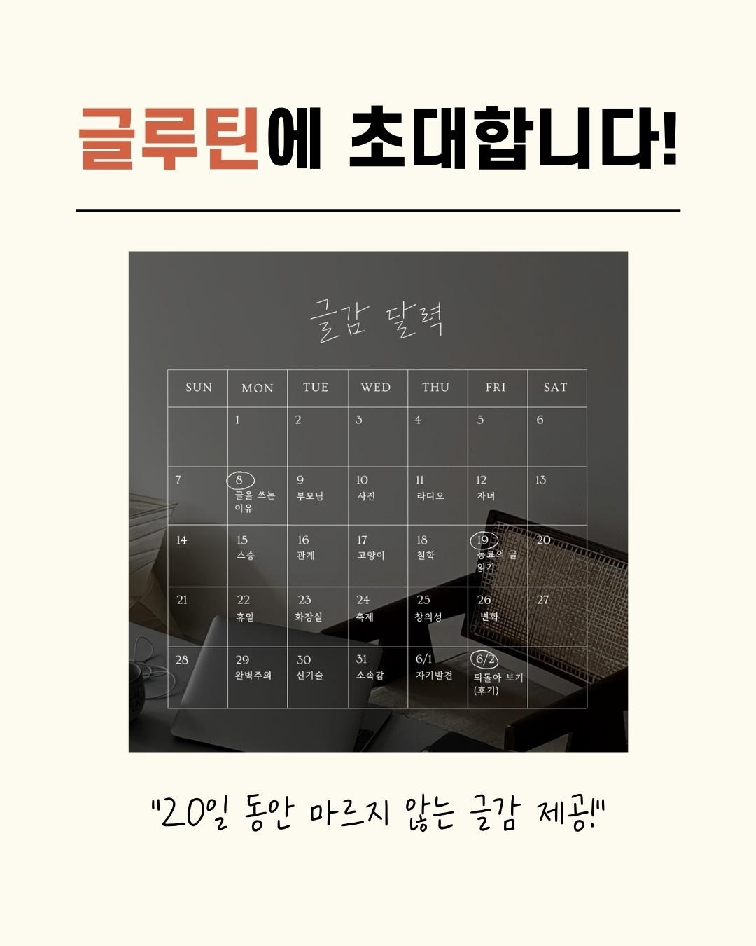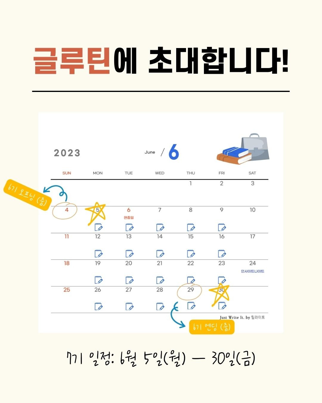 글쓰기 루틴: 6월 5일(월)부터 6월 30일(금)까지
