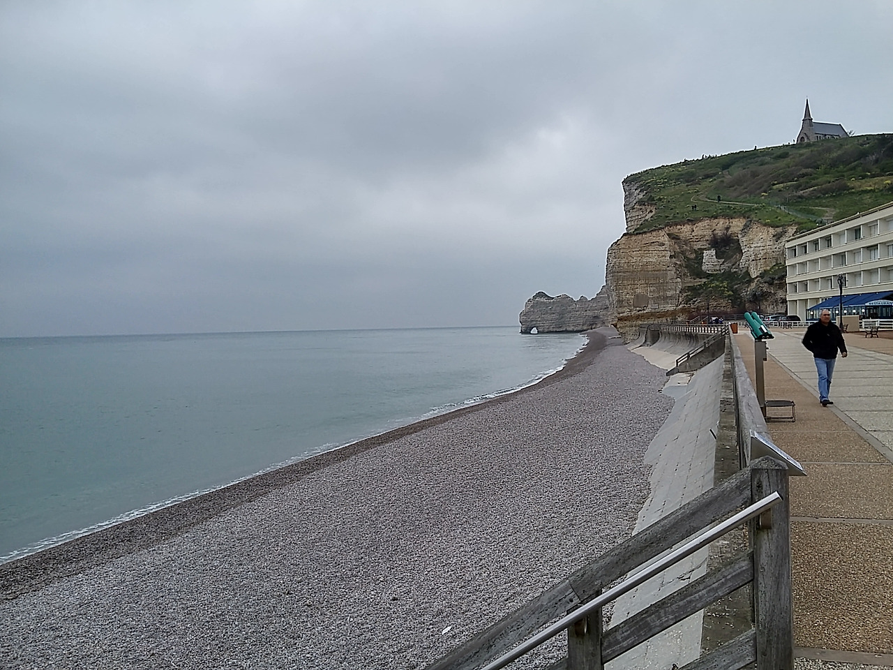노르망디 해안, 에트르타 근처의 해안가는 자갈로 이루어져 있다. 자갈과 파도의 심포니는 참으로 색다르다.