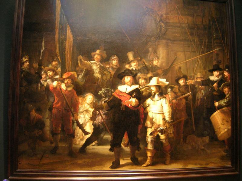 유화의 오랜 세월로 인한 퇴색이 그림 전체를 어둡게 보이게 해 Night Watch로 알려지게 되었다.