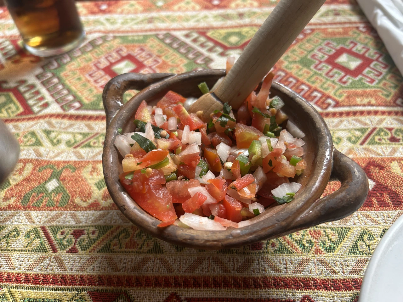 아래 그림은 토마토와 양파, 고추를 넣어 초록, 하양, 빨간색을 만들어낸 살사인데, '살사 멕시카나' 또는 '삐꼬 데 가요(닭 부리로 쪼아 먹는...)'라고 부르기도 한다. 이 살사를 계란에 넣어 스크램블링을 하면, 'Huevo Mexicana (멕시코 오믈렛)'이 된다. 이젠, 어느 음식에서도 이 세 가지 색을 찾는 재미가 쏠쏠하다.