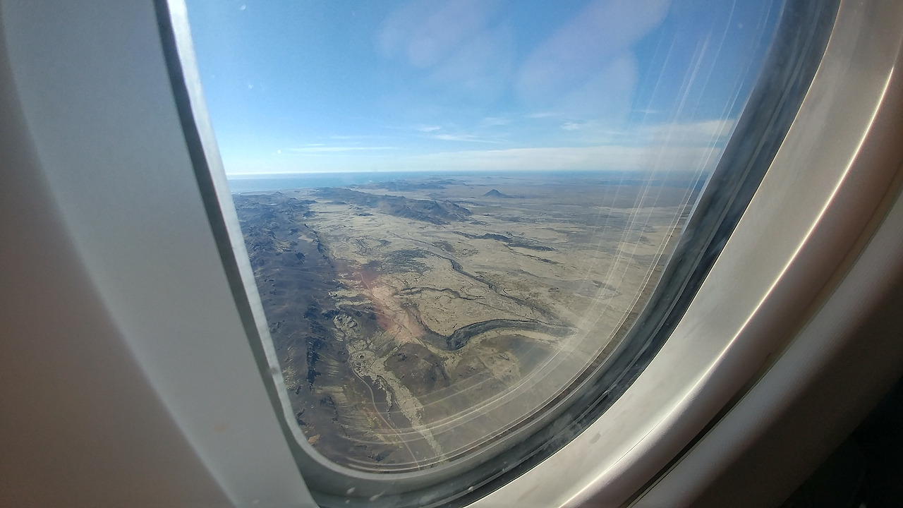 비행기가 뜬 건 예상보다는 빠른 약 40분 뒤였다. 날아오르는 동체에 몸을 맡기 우리 가족의 여행은 또 그렇게 진행이 되고 있었다. 멀어져 가는 네덜란드 땅이 보이고 우리는 이내 구름 속으로 들어갔다. 3시간이 조금 못된 시간엔 바다만이 아래를 지나가고 있었고 이내 아이슬란드의 땅 끝자락이 보이기 시작했다.