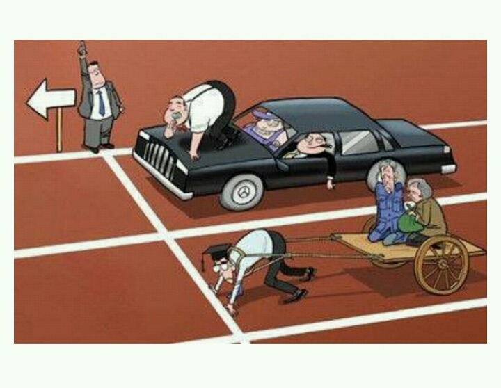농담처럼 들리는 말이지만, 현실에서 소스라치게 펄떡펄떡 살아 움직이는 생생한 개념이라 생각해. 같은 출발 선에서 출발하는 다른 계급의 모양새를 보면 '세상은 공평하지도 공정하지도 않다'란 걸 바로 알 수 있을 거야.