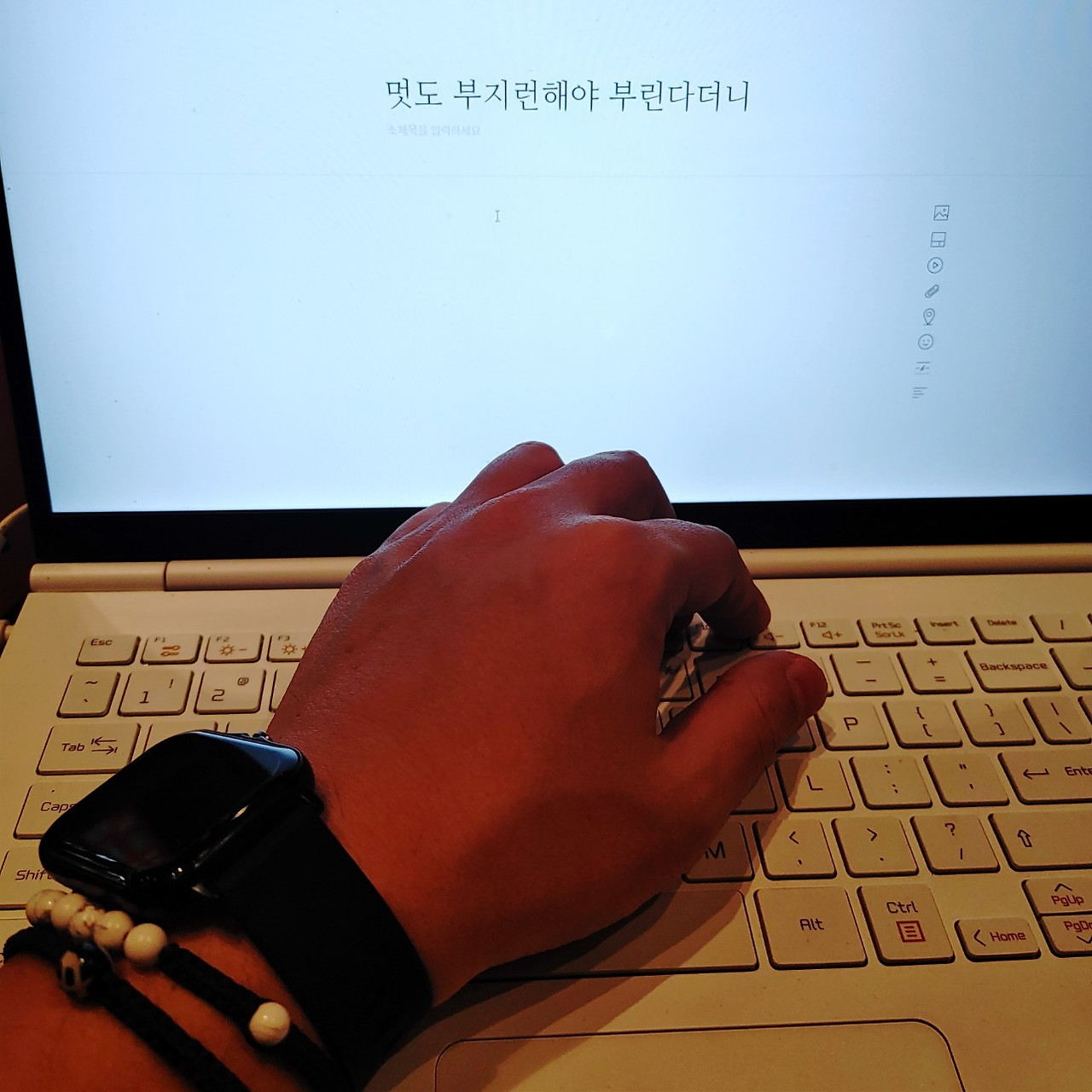 생전 처음 해보는 팔찌. 어색하지만 뭔가 기분이 전환되는 듯했다. 회사에서 남들이 보고 뭐라 하진 않을까, 괜히 튀는 것 아닐까. 이런저런 기우와 잡생각은 잠시 거두기로 했다. 타투까지 하려고 했었는데 뭐.