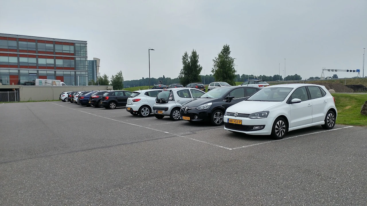 회사 근처 주차장. 작은 해치백 차량들이 한가득 하다.