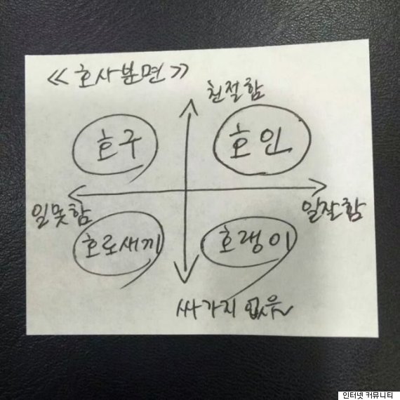 물론, 이보다 더 재치 있게 설명해 놓은 표도 있다. 일명 '호사분면'이라는 것인데, 이것은 좀 더 '상사'와의 인연에 초점을 두고 있다. 하지만 중요한 것은 우리 모두 상사나 동료, 후배 사원들에게 모두 '호로 XX'가 되어서는 안 된다는 것이다.