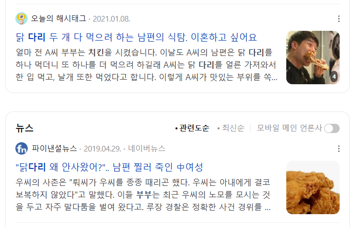 '닭다리'와 '부부싸움'이란 키워드로 검색을 해봐라.