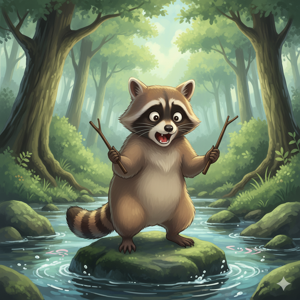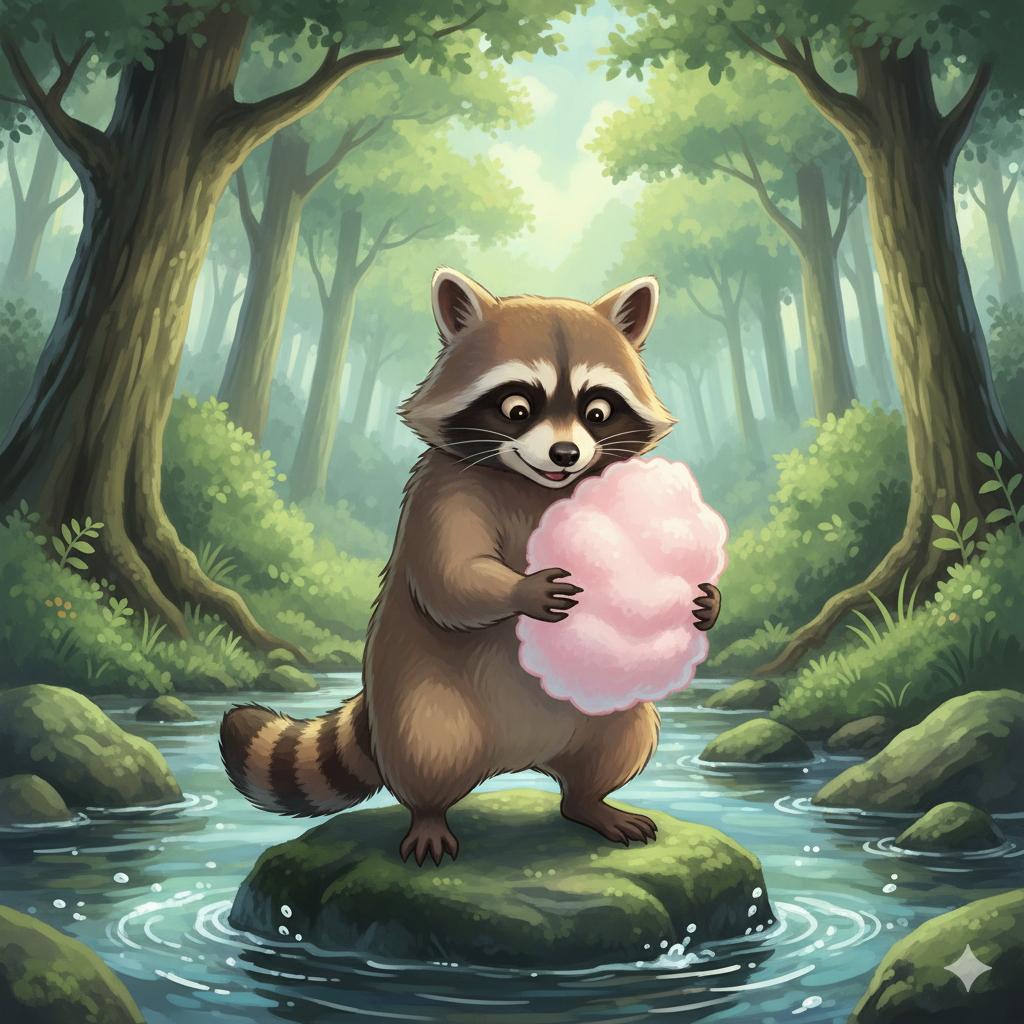 손에 넣은 솜사탕을 물에 씻어 먹으려다, 사라진 솜사탕을 보며 나라 잃은 표정을 짓는 너구리 영상이 있다.
