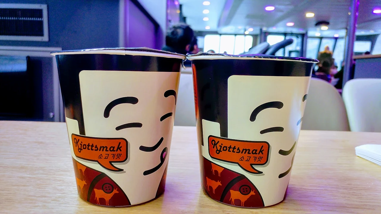 뜨거운 것이 생각날 때쯤, 우리는 노르웨이에서 잘 나간다는 라면을 만날 수 있었다. 다행히 배에서도 판매를 했는데, 반가운 한글로 무슨 맛인지 용기에 쓰여있었다. 그것은 '소고기맛'. 맵지 않아 아이들도 부담 없이 즐겼다. 무엇보다 차가워진 몸을 녹이는데 더없이 좋았다. 역시, 라면 만든 사람은 노벨상 줘야 한다는 말이 빈말이 아니다. 라면은 이렇게, 따뜻함을 채워준다. 굶주린 사람들의 든든한 친구이자 허기를 넘어 영혼까지 어루만지는 느낌이다.