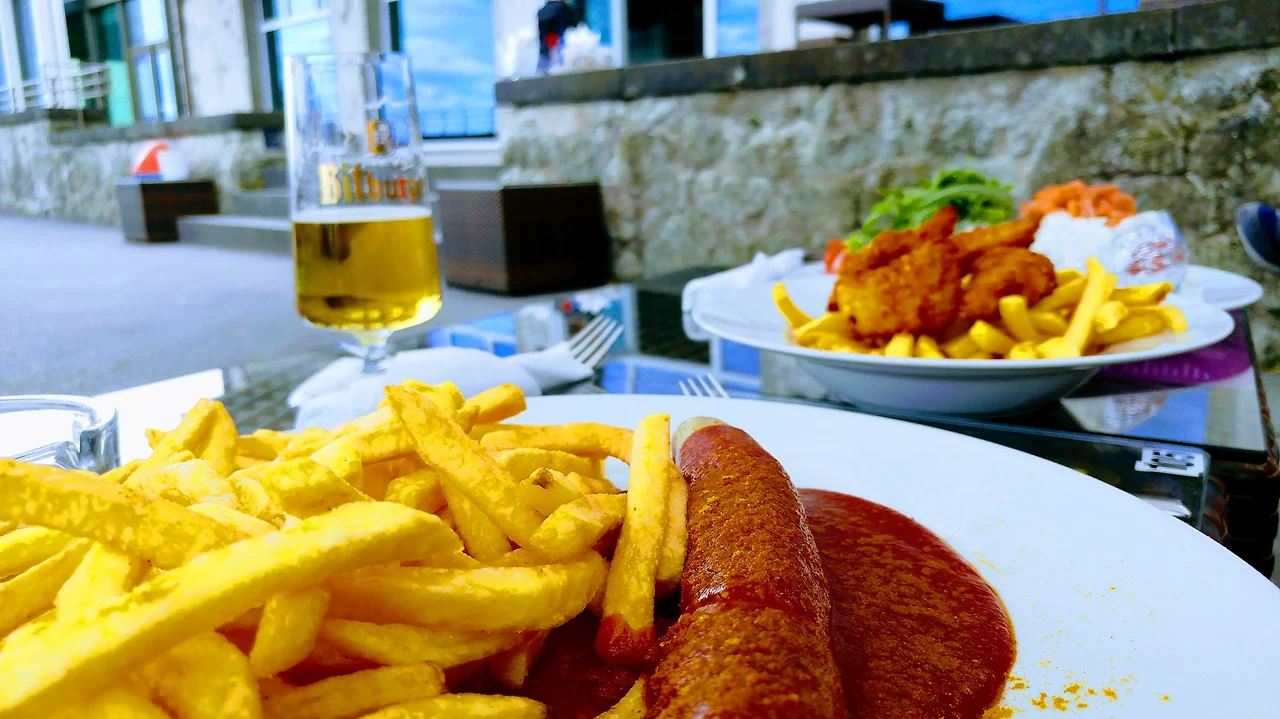 위를 마음껏 둘러본 후, 갑자기 허기가 몰려왔다. 아이들도 배고프다고 아우성. 야외에 아늑한 곳에 자리를 잡고 샐러드와 감자, 그리고 커리 소시지를 즐겼다. 와이프는 맥주 한 잔을 아주 맛있고 시원하게 들이켰다.