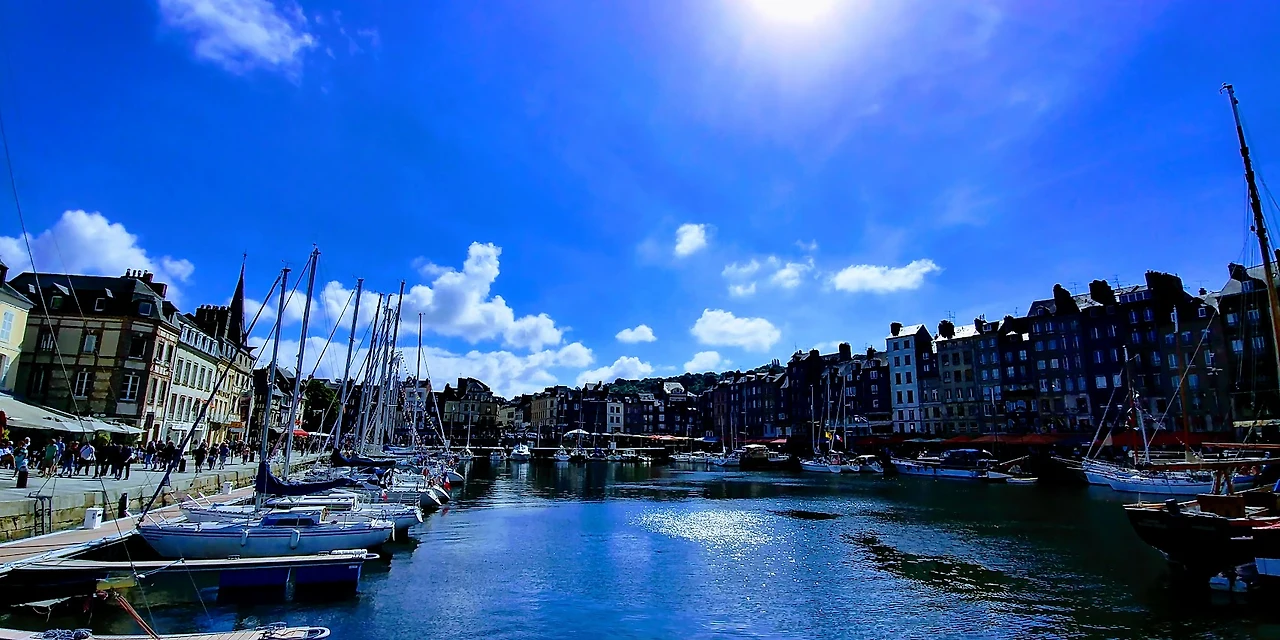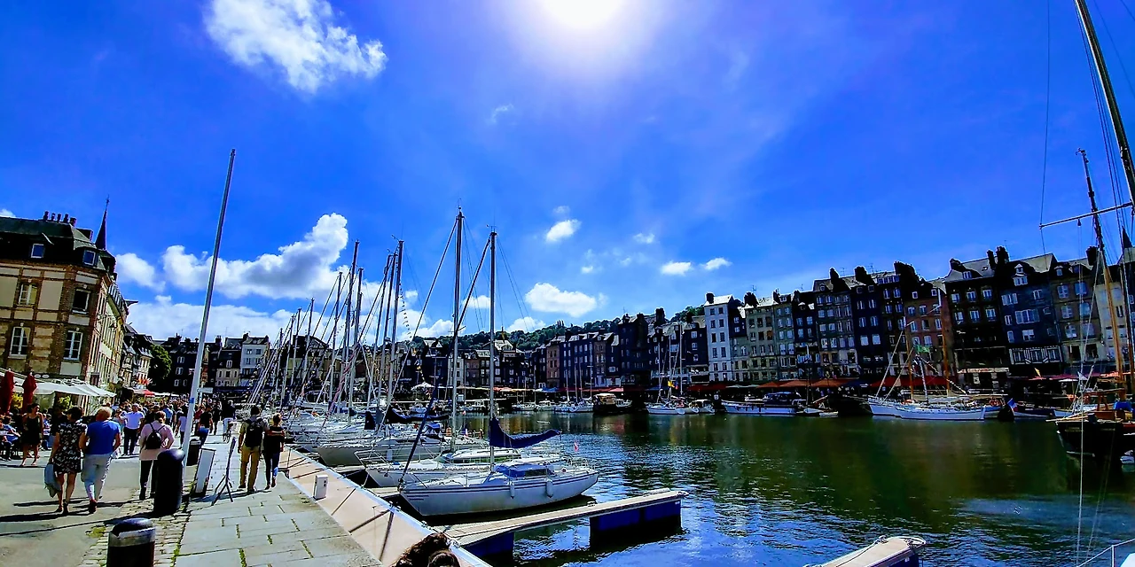 그즈음에 우리는 고속도로를 빠져나와 국도로 접어들었다. 15년 2월에 노르망디 3대 절경(에트르타, 옹플레흐, 몽셸미셸)이라 하여 정신없이 들렀던 그때가 떠올랐다. 봄이라고 하기에는 이른 그즈음의 노르망디는 네덜란드의 날씨와 별반 다르지 않았었다. 추적한 비와 으슬으슬한 한기가 아직도 기억나는 이유다. 브뤼헤를 떠날 때 앞이 보이지 않을 정도로 내리치던 비는 다행히 우리를 따라오지 않았다. 대신, 2년 전의 날씨를 사과라도 하듯이 환한 햇살과 기분 좋은 기온으로 옹플레흐는 우리를 맞이했다. 마침, 프랑스의 전승기념일이었기 때문에 도시 초입에서도 어떤 활기를 느낄 수가 있었다. 또 하나의 선물이었다.