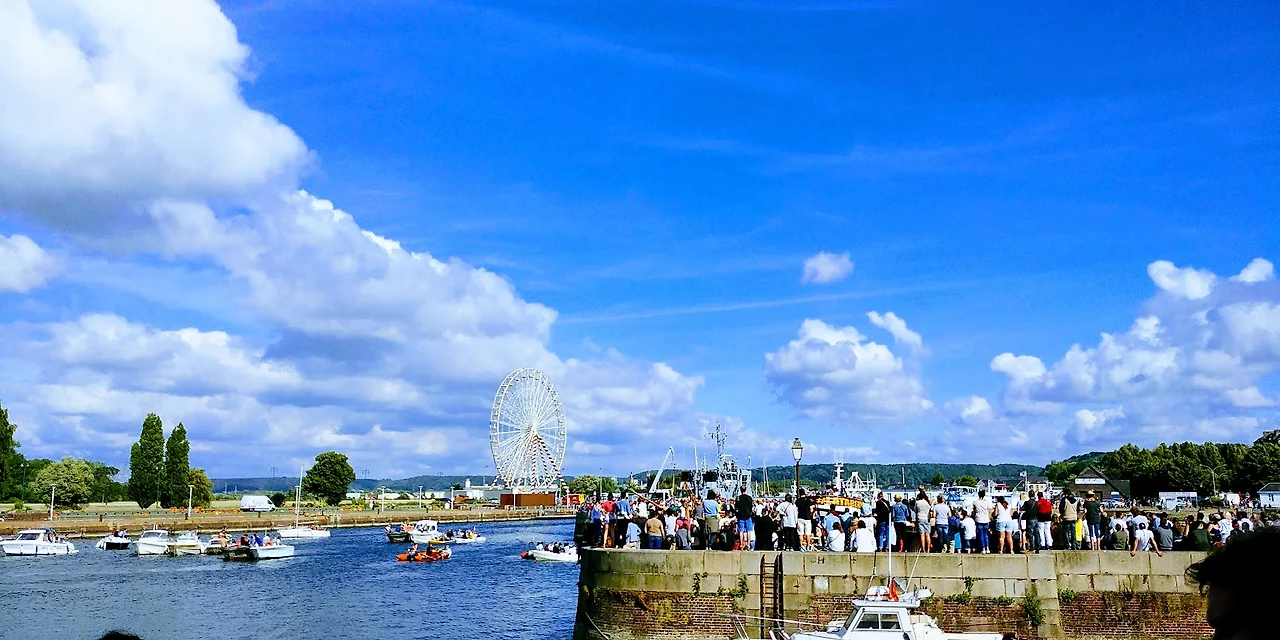 프랑스는 전승기념일이었기 때문에 무언가로 분주했다. 아직 시작은 안 했지만, 항구 어느 쪽은 이미 사람들이 삼삼오오 몰려들고 있었다. 무엇을 하려는지는 감이 오지 않았지만, 아직 무언가 시작되지 않은 것은 확실했다. 그래서 우리는 관람차로 발길을 옮겼다. 옹플레흐의 정수리를 볼 수 있다니. 옹플레흐가 참 많은 선물을 준비했다.