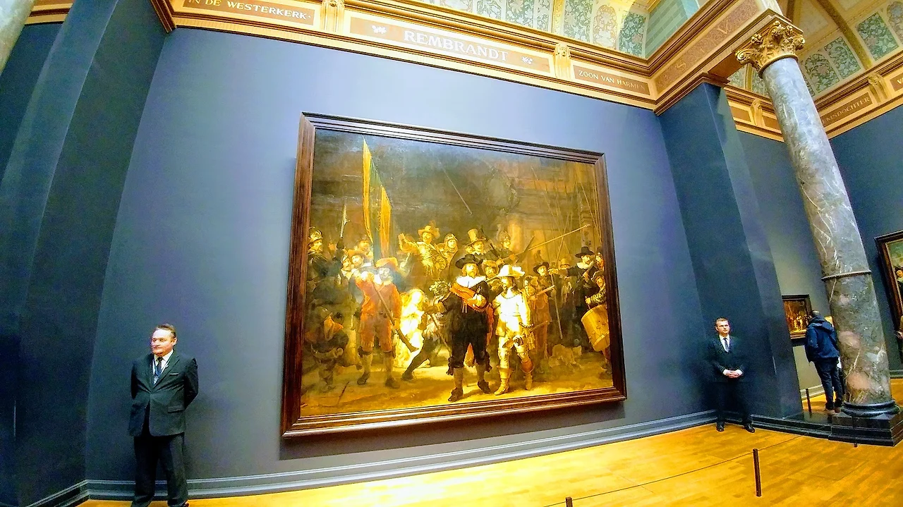 네덜란드를 떠올릴 때 우리는 풍차와 튤립, 그리고 반 고흐를 가장 먼저 떠올릴 것이다. 그 외에도 스케이트, 히딩크, 치즈나 암스테르담을 떠올릴 수도 있겠다. 어찌 되었건, 그중에 유명한 예술가는 단연코 반 고흐가 큰 자리를 차지한다. 하지만 유럽 사람들이나 네덜란드 사람들에게 질문을 한다면, 렘브란트란 이름이 더 먼저 튀어나올 가능성이 더 크다. 그의 작품과 생애는 네덜란드의 황금기와 연관되어 있기 때문이다. 반 고흐는 1853년에 태어나 1890년에 생을 마감했다. 렘브란트는 이보다 앞선 1606 ~ 1660년까지 삶을 살았다. 반 고흐보다 2세기 앞선 바로크 시대의 이 화가는 그림과 판화에 능통했다. 반 고흐 미술관 옆 국립중앙박물관 (Rijks Museum)의 Main 전시실 한가운데를 렘브란트의 대표작 '야경(Night Watch - 세계적으로 유명한 이 그림의 이름은 따로 있습니다. 아래 글에서 별도로 설명하겠습니다.)'이 자리 잡고 있다는 것이 그의 위상을 말해준다.