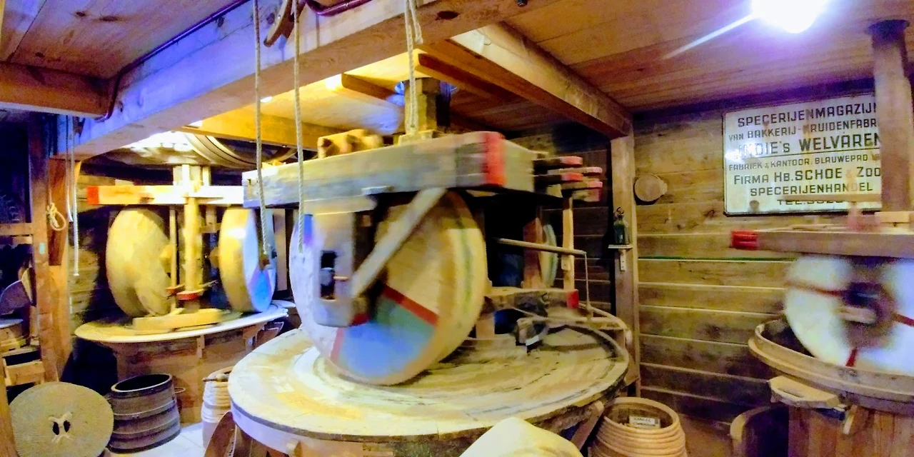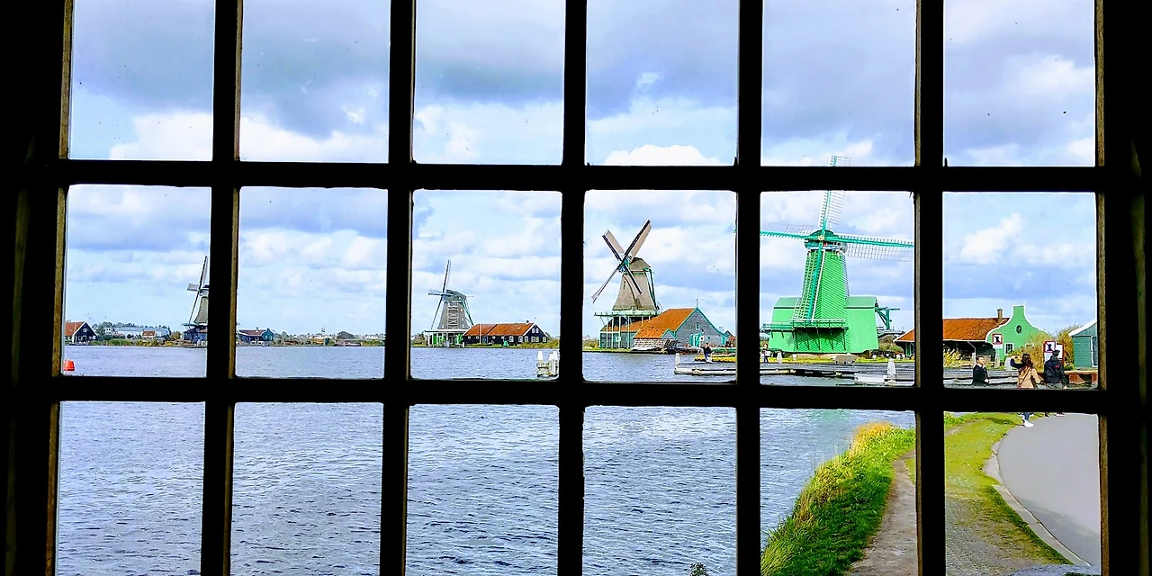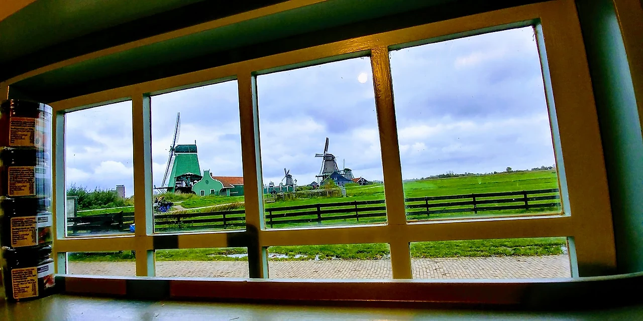 마무리 단계입니다. 풍차가 돌아가는 어느 상점에 들어가면 풍차가 돌면서 어떤 일을 하는지 볼 수 있습니다. 풍차의 주된 역할은 물레방아로 물을 퍼내는 것이지만, 내부에선 열심히 곡식을 빻습니다. 분주히 돌아가는 맷돌들의 무게를 짐작해보면 바람의 세기가 얼마나 강한지를 알 수 있습니다. 아, 그리고 그 상점 안에 있는 격자무늬 창문 밖으로 찍는 풍경도 참 아름답습니다. 이곳도 아무 카메라나 갖다 대도 작품이 나옵니다.