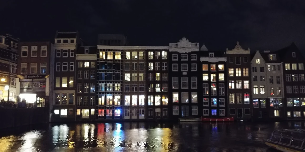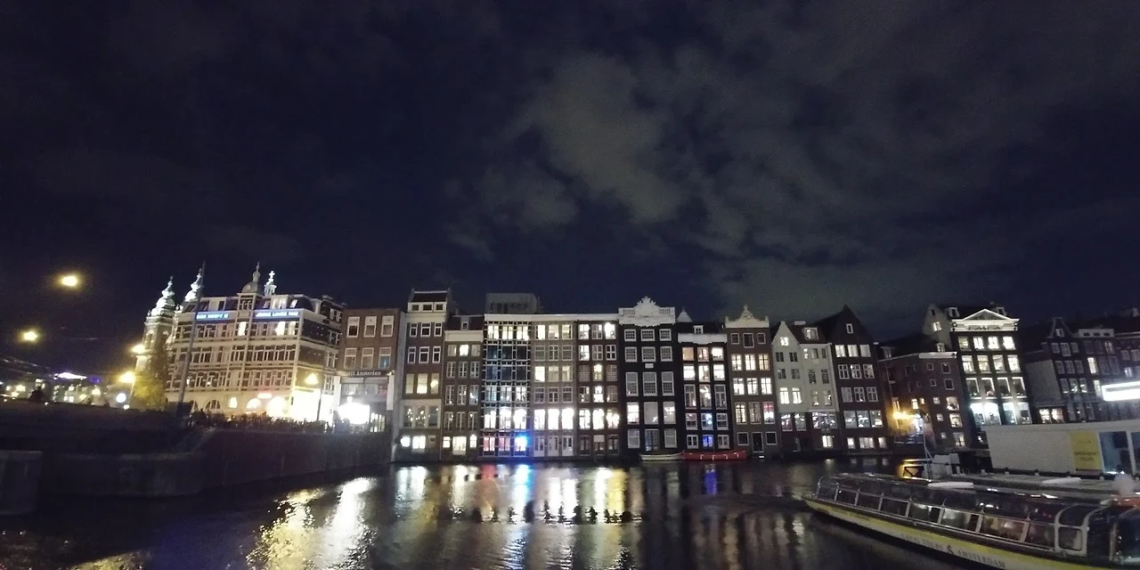 자, 대망의 핫스팟입니다. 네덜란드는 에펠탑이나 영국 등 다른 유럽의 어느 도시와 같이 대단한 구조물이 없습니다. 그렇다면 암스테르담만의 색깔을 나타내는 곳은 어딜까요? 제가 나름대로 정했습니다만, 모두가 동의하는 곳입니다. 암스테르담 중앙역을 마주 보고 우측에 자리한 커널 크루즈 정박장이 있는 곳의 풍경입니다. 보이시나요? 물과 기울어지고 삐뚤빼뚤한 집. 이게 바로 암스테르담의 상징입니다. 이것을 모티브로 한 자석 기념품도 참 많죠. 그 모습이 너무나 아름다워, 그 앞에서 사진을 찍으면 합성한 것처럼 나옵니다. 조금은 비현실적으로 보인다는 반증이겠죠.