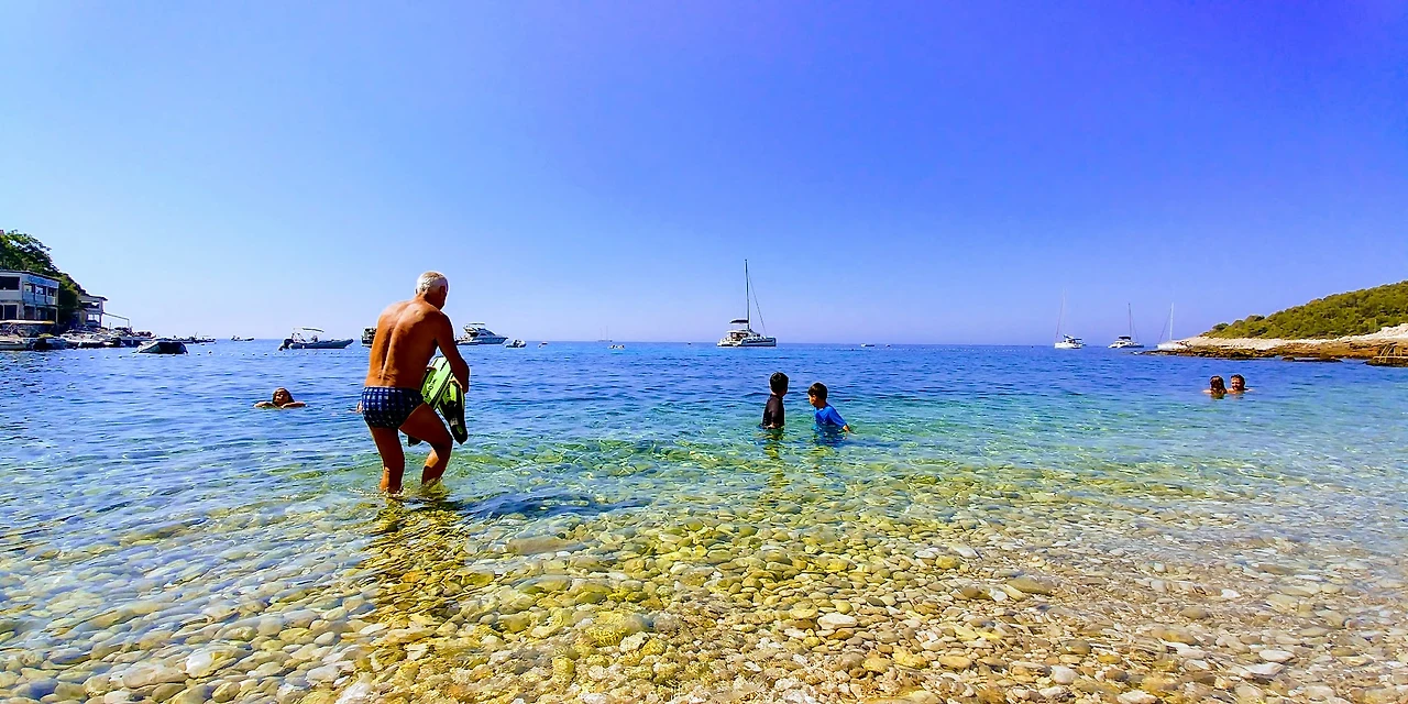시간이 좀 지나고 와이프와 나는 번갈아 가며 아이들과 바다에서 함께 시간을 보냈다. 역시나 물은 찼다. 더운 날씨를 생각하면 시원하다고 하는 것이 맞겠지만. 평소라면 모래를 가지고 놀았을 녀석들인데, 모래가 아닌 자갈이니 처음엔 좀 낯설어했다. 하지만 금세 마음에 드는 돌멩이를 하나둘 골라가며 저 나름대로 즐길거리를 찾았다. 물은 맑고, 하늘을 푸르고 아이들은 즐거워하는 모습에 모든 것이 좋았다. 흐바르에게 받은 선물이 마냥 좋았다.