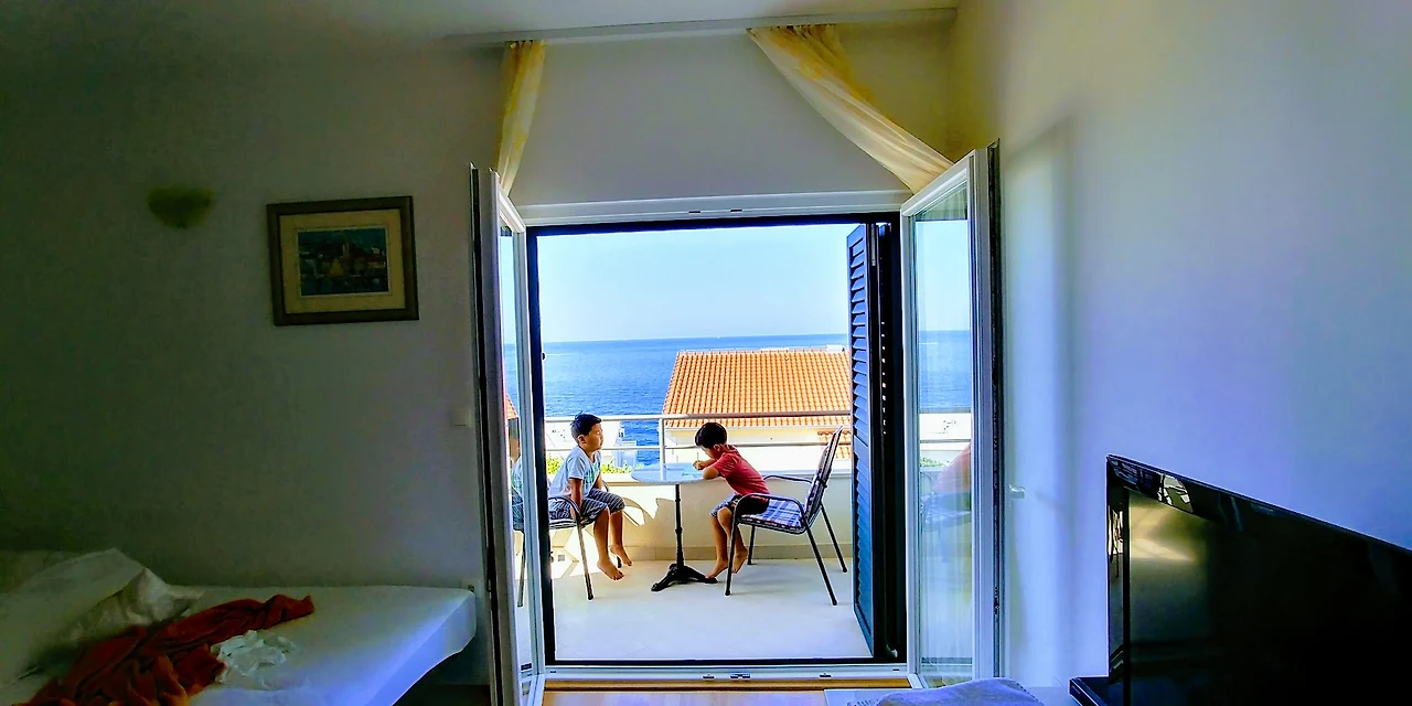 아침이 되어 창문 너머로는 곧바로 흐바르의 매력이 몰려왔다. 소리로만 들리던 바다는, 그 파란 빛깔을 여과 없이 내비치고 있었다. 마치 하늘과 누가 더 파란지 대결이라도 벌이는 것 같았다. 설렜다. 저 바다를 아이들에게 보여줄 수 있어서 좋았다. 역시나 아이들은 바다로 가자고 아우성이었다. 바다는 그렇게 누구든 즐겁게 만든다.
