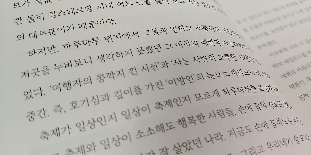 누군가 나에게 왜 네덜란드 이야기를 책으로 썼냐고 묻는 다면, 나는 내가 네덜란드에 있었기 때문이라고 대답할 것이다. 하지만 그것이 고개를 끄덕이게 할만한 명답은 아니다. 네덜란드에 있다고 해서 다 그에 대한 책을 쓰는 건 아니기 때문이다.