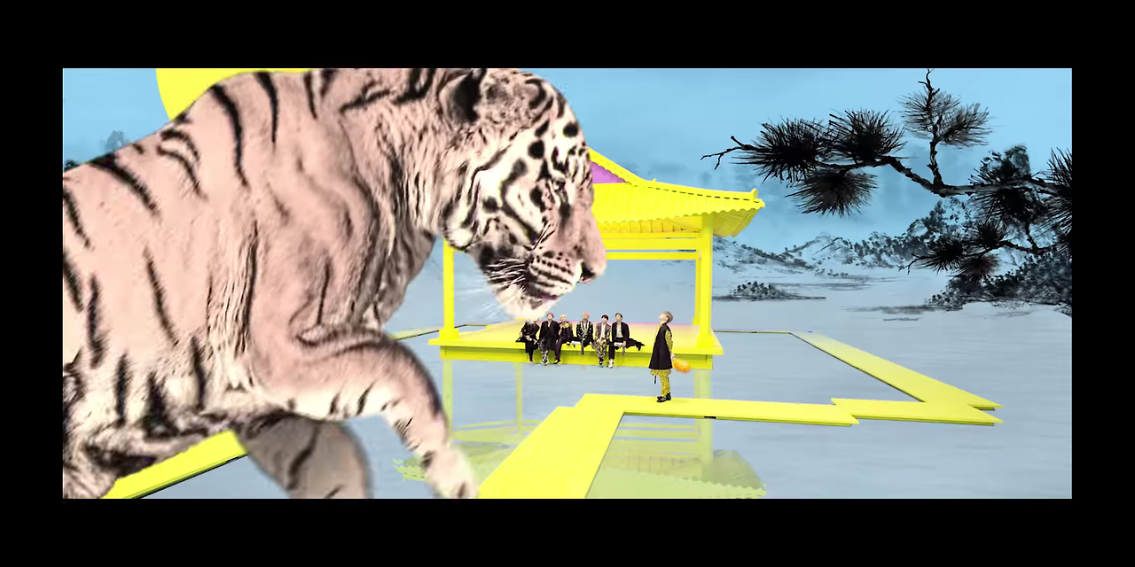 이 장면 외에도 아프리카의 사파리를 보여주는 이미지가 많이 나온다. 이는 '사우스 아프리카' 풍의 음악을 덧입은 이번 음악과 관계있다. 조선 EDM이라는, 추임새가 들어간 흥겨운 이미지도 북청사자와 한복으로 대변된다.