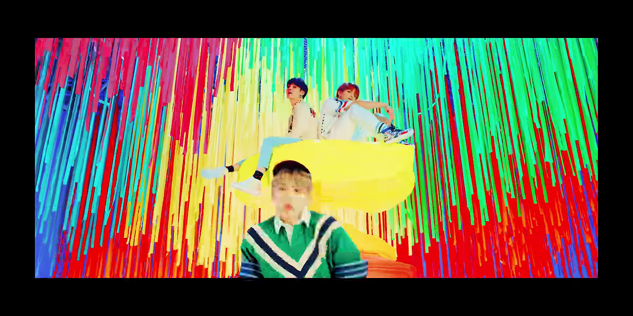 살해 협박으로 가장 마음고생이 많았을 지민은, 이 뮤직비디오의 중심을 담당하는 듯 보인다. 그리고 그의 입에서 "You can't stop me lovin' myself"은 반복된다. 그가 외치는 포효 속으로 들어가면 화려한 색상의 배경이 나온다. BTS의 세계라고 해도 좋을 것이다. 이미 DNA에서는 이 노란색과 보라색이 쓰였다. Fake Love 앨범에서 꿈을 깨기 전 보이는 저기 저 이상향의 박스도, 이 노란색과 보라색이 어우러진 공간이었다.