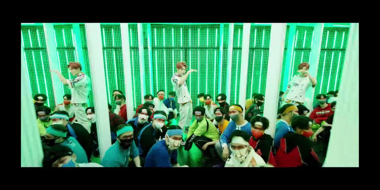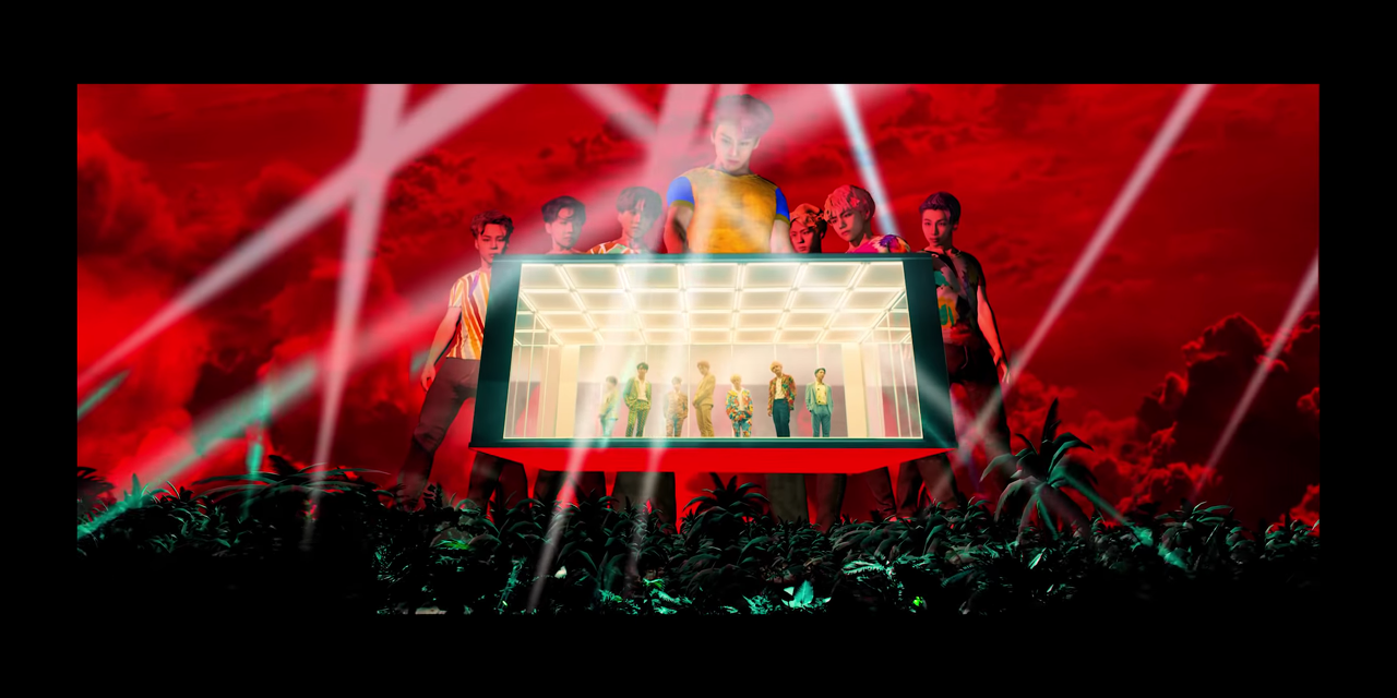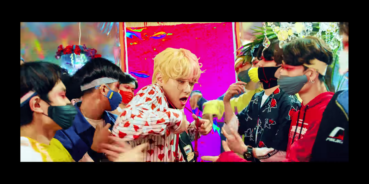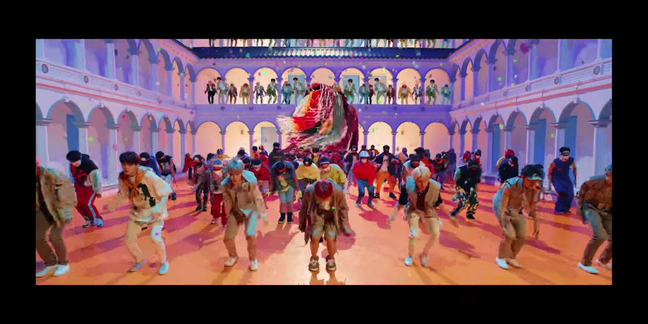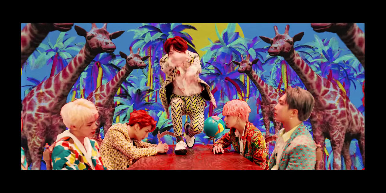 When we go to Jimin's roaring, we finaly meet BTS's world. Their own stage with splendid colors. We can recall yellow & purple color in 'DNA'. It was just a kind of material but in this 'Idol' MV, all materials have been built up! It is the complete of 'Identity'!
