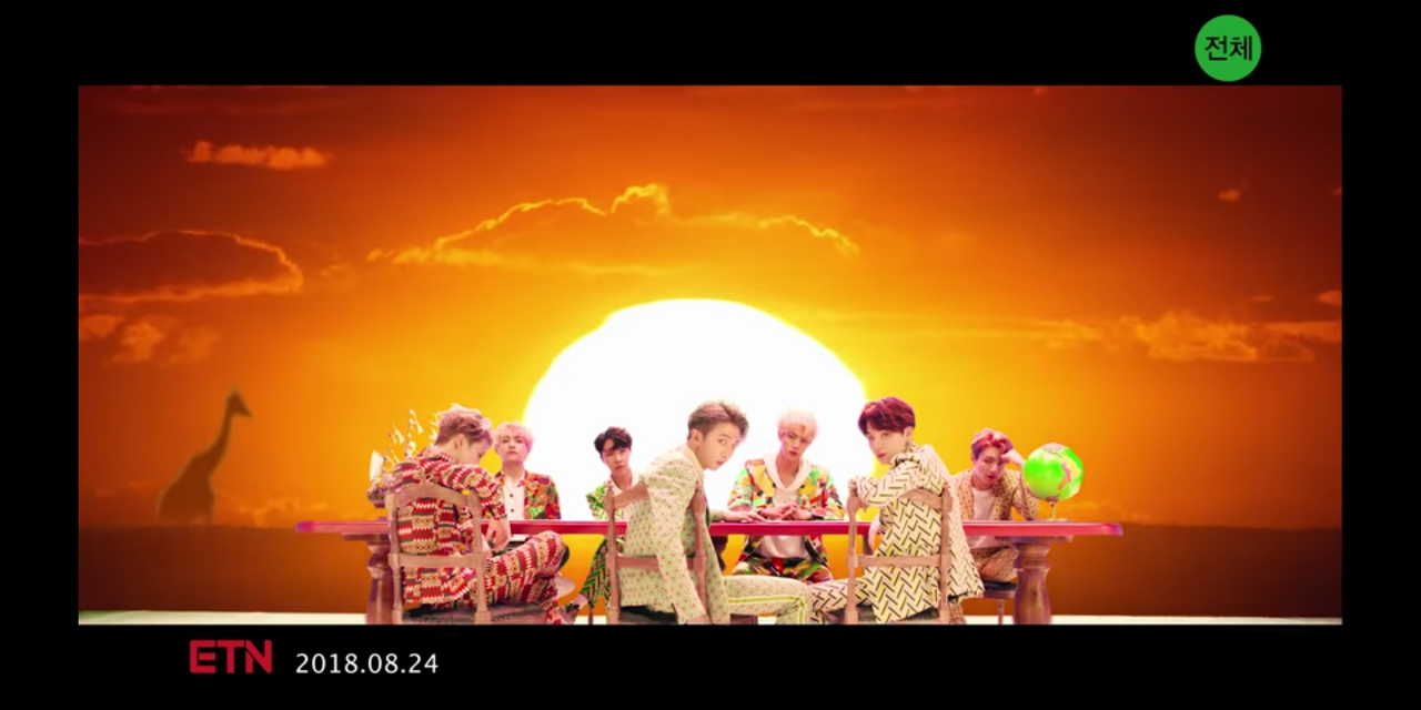 The MV stars with sunrise scene. Looks like African background. You can see a sailing boat and a globe. The last scene is different. Sun is going down. Through the MV, many symbols are treated in a day. That is, the summary of BTS's activities.