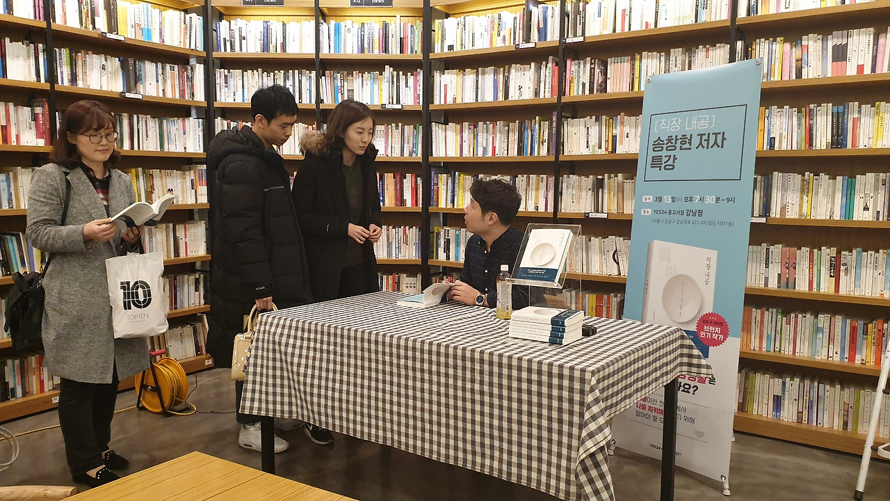 재밌는 건, 강연회에 신청을 하지 않으신 분들도 책을 사러 오셨다가 제 강의를 들으셨다는 겁니다.
