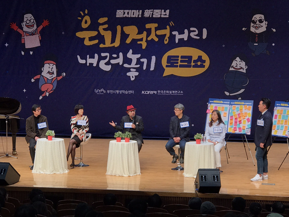 어제밤 부천시청 대강당에서 은퇴 걱정 내려놓기 토크쇼에 창직전문가로 출연했습니다. 한국은퇴설계연구소 권도형 소장과 KBS 김홍성아나운서 그리고 몇 분의 패널들과 함께 했습니다.