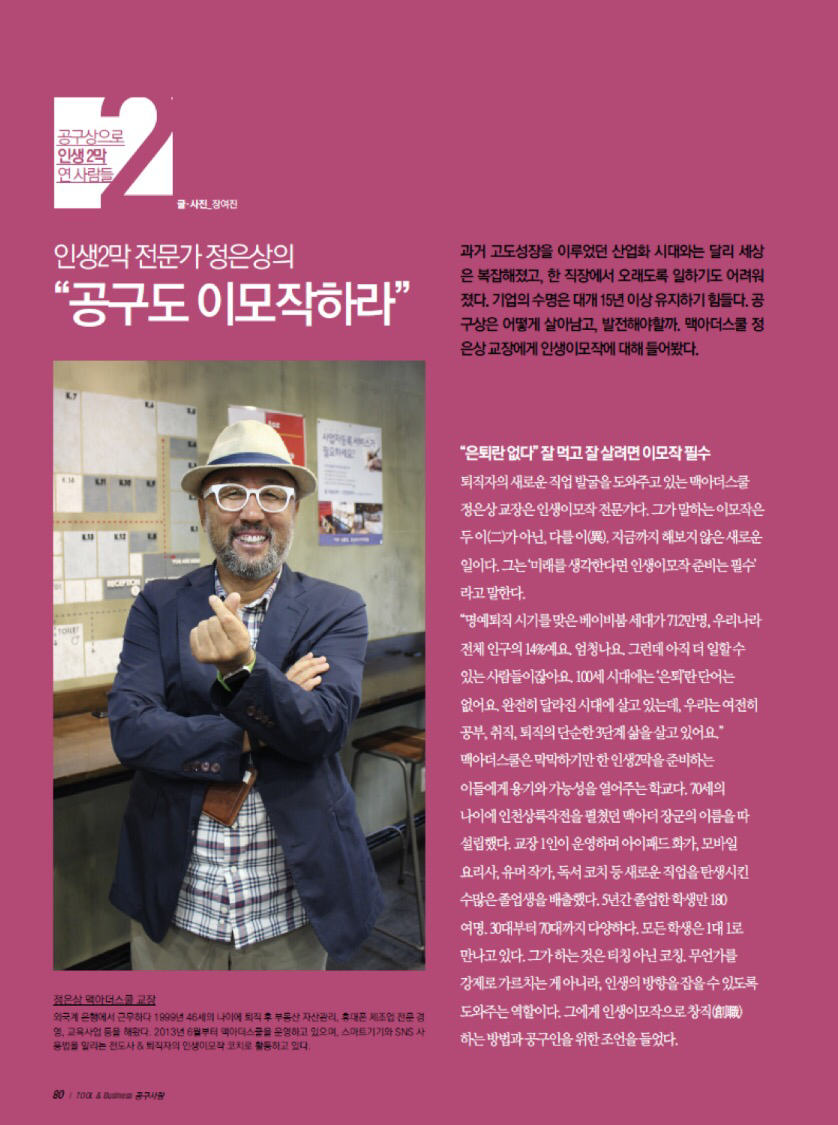창직을 통해 평생직업을 찾도록 도와주는 창직학교 맥아더스쿨 교장입니다
