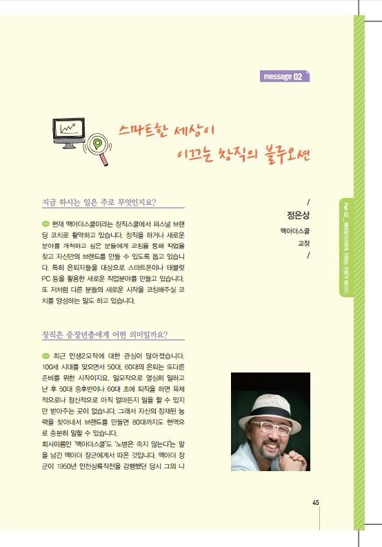 창직을 통해 평생직업을 찾도록 도와주는 창직학교 맥아더스쿨 교장입니다