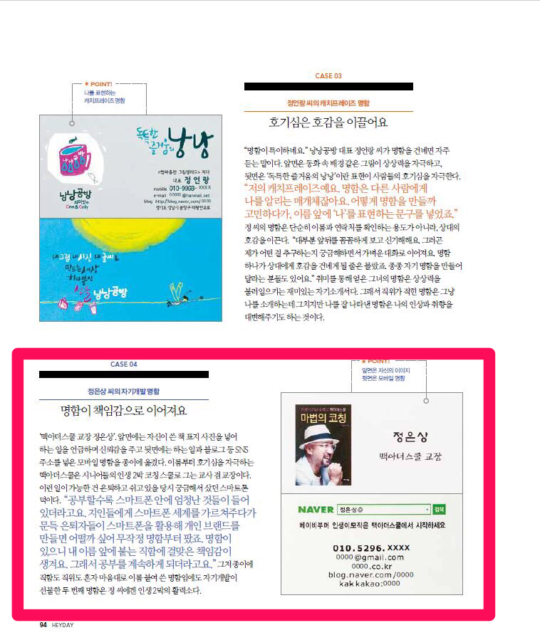 헤이데이HEYDAY 5월호에 소개된 나의 명함입니다. 인생이모작을 시작하는 베이비부머들이여, 자신을 당당하게 표현하는 명함을 가져 봅시다~*