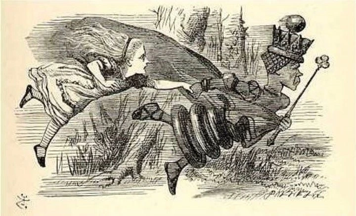 레드퀸Red Queen 효과는 계속해서 진화하는 상대에 맞서서 끊임없는 노력을 통해 발전하지 못하면 끝내 도태된다는 가설이다. 이것을 경제에서는 경쟁 없는 경제는 죽은 경제라고 표현하기도 한다. 이 말의 유래는 루이스 캐럴Lewis Carrol의 동화 <이상한 나라의 앨리스>의 속편 <거울 나라의 앨리스>에서 왔는데 앨리스가 레드퀸과 함께 나무 아래에서 계속 달리면서 레드퀸에게 왜 계속 달리는데 나무를 벗어나지 못하느냐고 묻자 레드퀸은 아무리 힘껏 달려봐야 제자리이기 때문에 두 배는 더 빨리 달려야 한다고 답한다. 거울 나라는 한 사물이 움직이면 다른 사물도 그 만큼의 속도에 따라 움직이는 특이한 나라다. 여기서 우리는 세상이 무섭도록 변화하는데 혹시 자신만 유독 그 자리에서 머물고 있지 않은지 살펴 볼 필요가 있다.