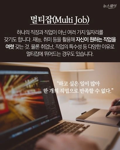 최근 밀레니얼 세대를 중심으로 하나가 아닌 두 개 이상의 직업을 가진 사람을 일컬어 N잡러(Jober)라고 부른다. N잡러는 다른 말로 멀티잡multi-job이라 할 수 있는데 이는 기존에 알려진 생계를 유지하기 위한 투잡two-Job과는 궤를 달리한다. 그들은 개인의 자아실현을 더 중시하고 있다. 생계를 위해 직장에 다니면서도 자신의 커리어를 확장할 수 있는 1인 방송 크리에이터로 활동하거나 번역이나 강연을 하는 등 다양한 직업을 경험한다. 이처럼 다양한 형태의 직업을 자신의 적성에 적용해 보다가 기회가 닿으면 다니던 직장을 그만두고 전업을 하게 된다. 이모작도 이미 낡은 용어다. 이젠 다모작의 시대이다. 한 두가지 일만 하기에는 업종도 다양해졌고 수명도 길어졌다. 핵심은 과연 어떤 선택을 하느냐에 달렸다.