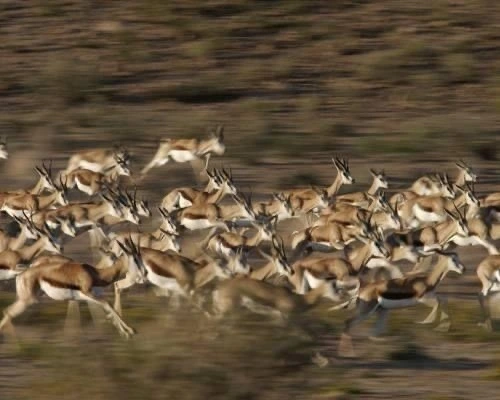 스프링벅(springbok)은 남아프리카에 주로 사는 초식성 양입니다. 독특하게 톡톡 뛰는 자세 때문에 이런 이름이 붙여졌습니다. 사나운 동물을 피해 무려 시속 94km까지 달릴 수 있는 이 동물은 수백 또는 수천마리가 대형 무리를 지어 다니는데 평소에는 평화롭게 풀을 뜯다가 점점 큰 무리를 이루게 되면 아주 이상한 습성이 나온답니다. 식욕이 왕성한 양들이 많이 모이면 먹을 풀이 모자라게 되고 무리의 맨 앞에 있는 양들보다 더 앞서 가려고 뛰어갑니다. 그러다 옆에 있던 양들이 모두 뛰기 시작하면 처음에 풀을 뜯기 위한 목적을 잃어버리고 무작정 앞을 향해 뛰어 갑니다. 결국 절벽에 다다랐지만 수천마리의 양떼가 뛰어 온 가속도에 의해 멈출 수가 없어서 모두 바다에 뛰어 들게 된다는 안타까운 이야기입니다.