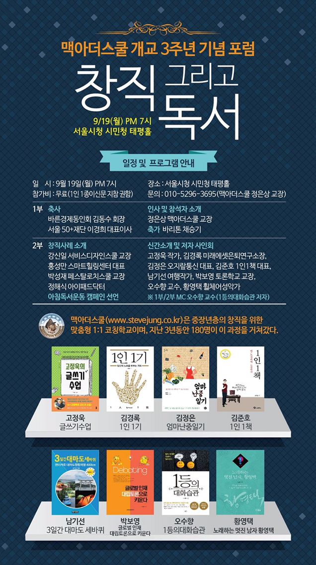 맥아더스쿨 개교기념 포럼에 초대합니다. 참석여부를 알려주시면 감사하겠습니다. 맥아더스쿨 교장 정은상 올림