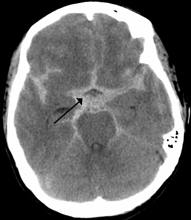 (뇌 CT상 별모양의 출혈 양상을 보인다. 일단 거미막하출혈이 발생하면 1/3은 즉사, 1/3은 병원 도착 후 사망, 1/3은 회복한다. https://recapem.com/