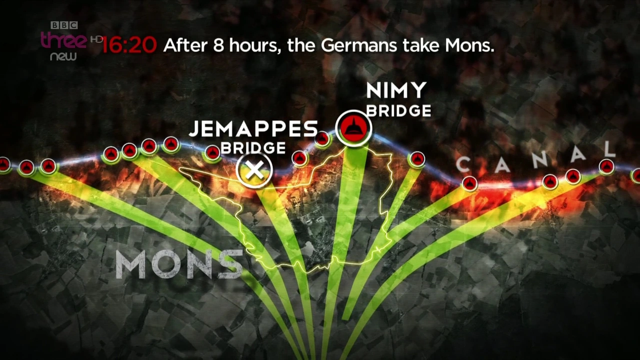 Episode # 1 "The First Day" ; 전쟁 발발 직후인 1914년 8월 23일, 벨기에 몽스(Mons)에 파병된 영국군 왕립보병연대(The Royal Fusiliers, 4th Battalion)가 독일군과 벌인 전투를 그린 실화에 기초한 이야기이다. 벨기에 몽스(Mons) 니미다리(Nimy Bridge)에서 독일군과 전투를 벌인 스틸중위(Lt. Fred Steele)와 시드 고드리일병(Private Sidney Godley) 등의 기록과 증언에 기초하였다.