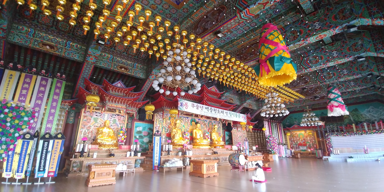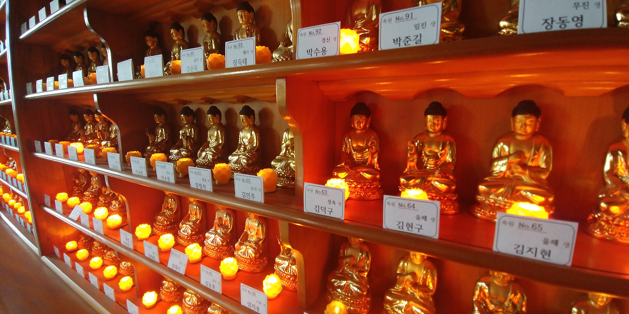 화려한 법당과 신도들의 이름이 새겨진 불상들