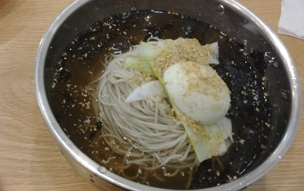 이유인즉, 강릉에는 비가 내리고 있었고 서쪽과는 전혀 다른 날씨였던 것이다. 다행히 우산이 있어 역에서 내리자마자 막국수 및 전병을 먹으러 갔다.