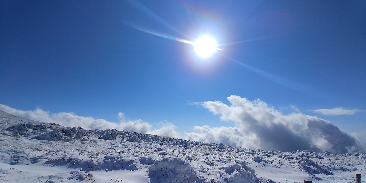 영실코스 쪽 전망대에 올라가면 엄청난 새찬 바람과 함께 꽁꽁 얼고 심지어 핸드폰도 작동을 멈추었지만 위에서 바라본 아래의 세상은 정말 눈부신 그 자체다.