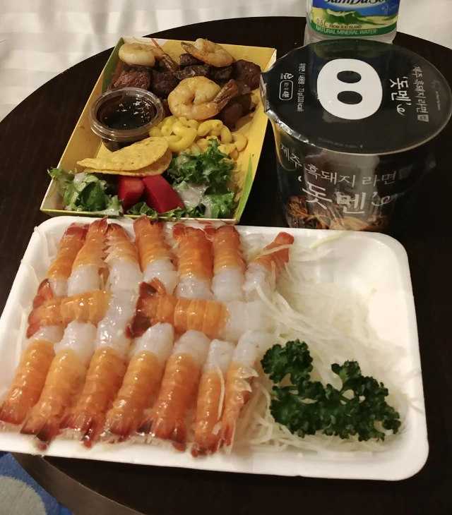 딱새우는 차갑지만 끝 맛이 달콤하고 스테이크는 소고기 맛이 일품인 나의 1번지 그리고 라면은 맵지 않으면서 깔끔한 맛이 일품이다.