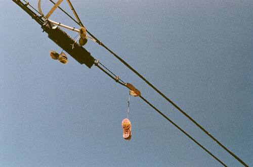한적한 길을 걷다 전깃줄에 걸린 신발을 발견했다.