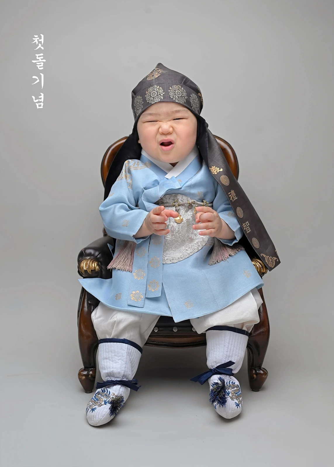 우연히 고른 아이 한복 색도 하늘색이랍니다. 먼저 고른 저의 한복 치마가 연한 노란색이라 맞추려고 고른 것인데.