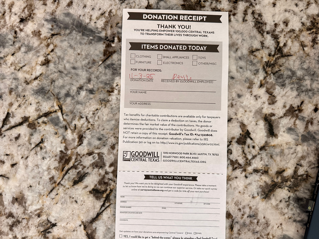 실제로 많은 미국인이 꾸준히 굿윌에 기부하는 이유이기도 하다. 단, 기부 금액이 $500을 넘으면 세부 목록 작성이 필요하므로 기부 전 사진을 미리 찍어두면 편하다.