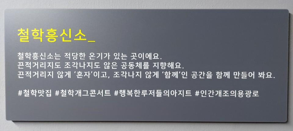 장소 : 철학흥신소 (주소 :서울 영등포구 국회대로36길 8 2층), 영등포구청역 4번 출구 도보 3분